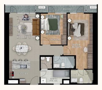 2 Bedroom with Balcony Size: 64sqm-100sqm